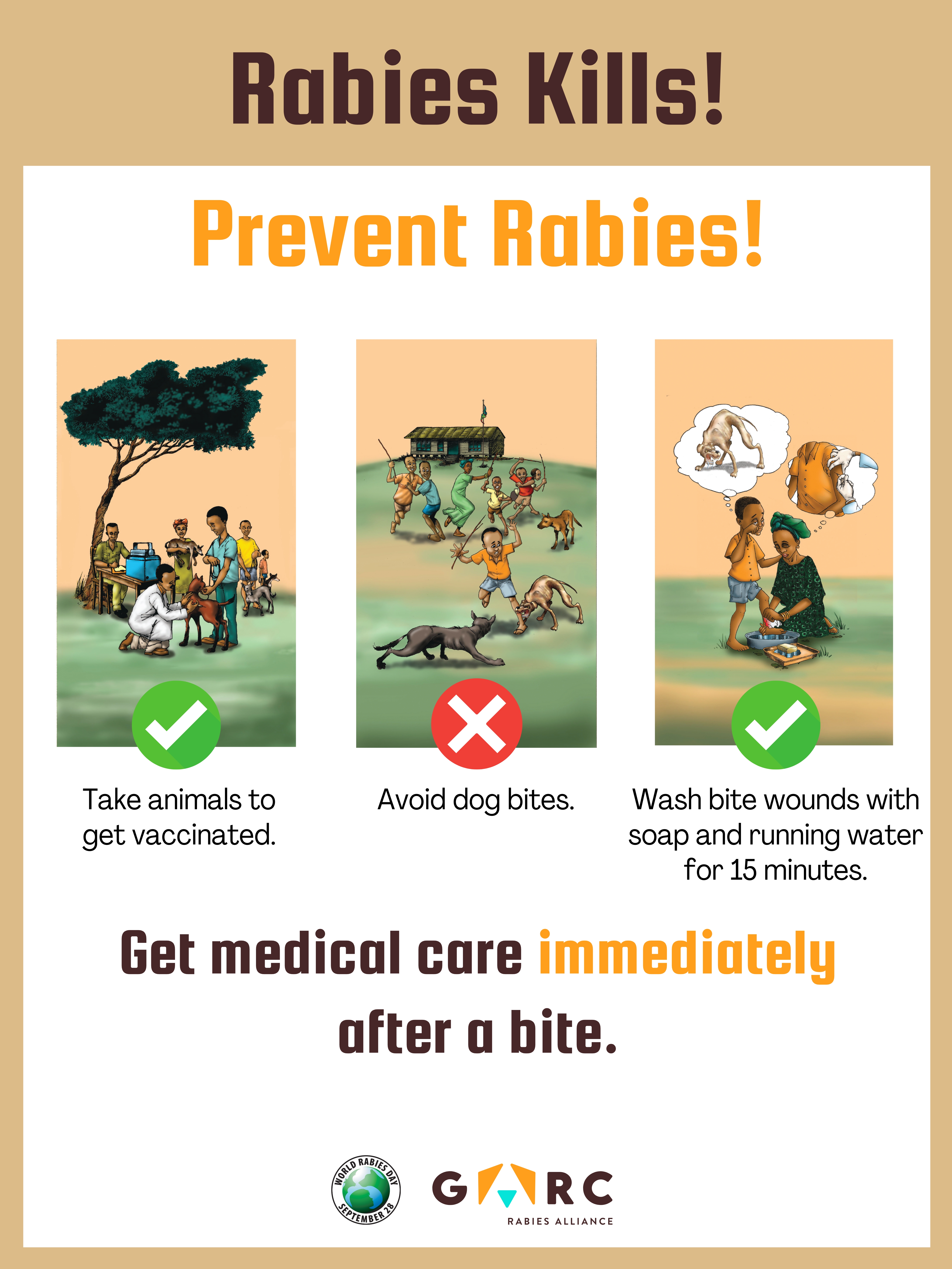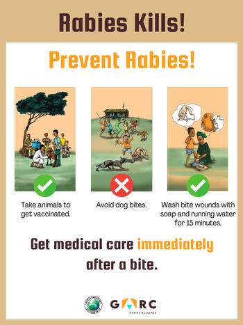 Rabies outreach poster (English) Downloadable resources Bite Management Bite prevention Posters and Factsheets Rabies Prevention Download zip archive of files US CDC GARC CDC/GARC PreviewRabies outreach poster EN_compressed.pdf PreviewRabies outreach poster EN.jpg