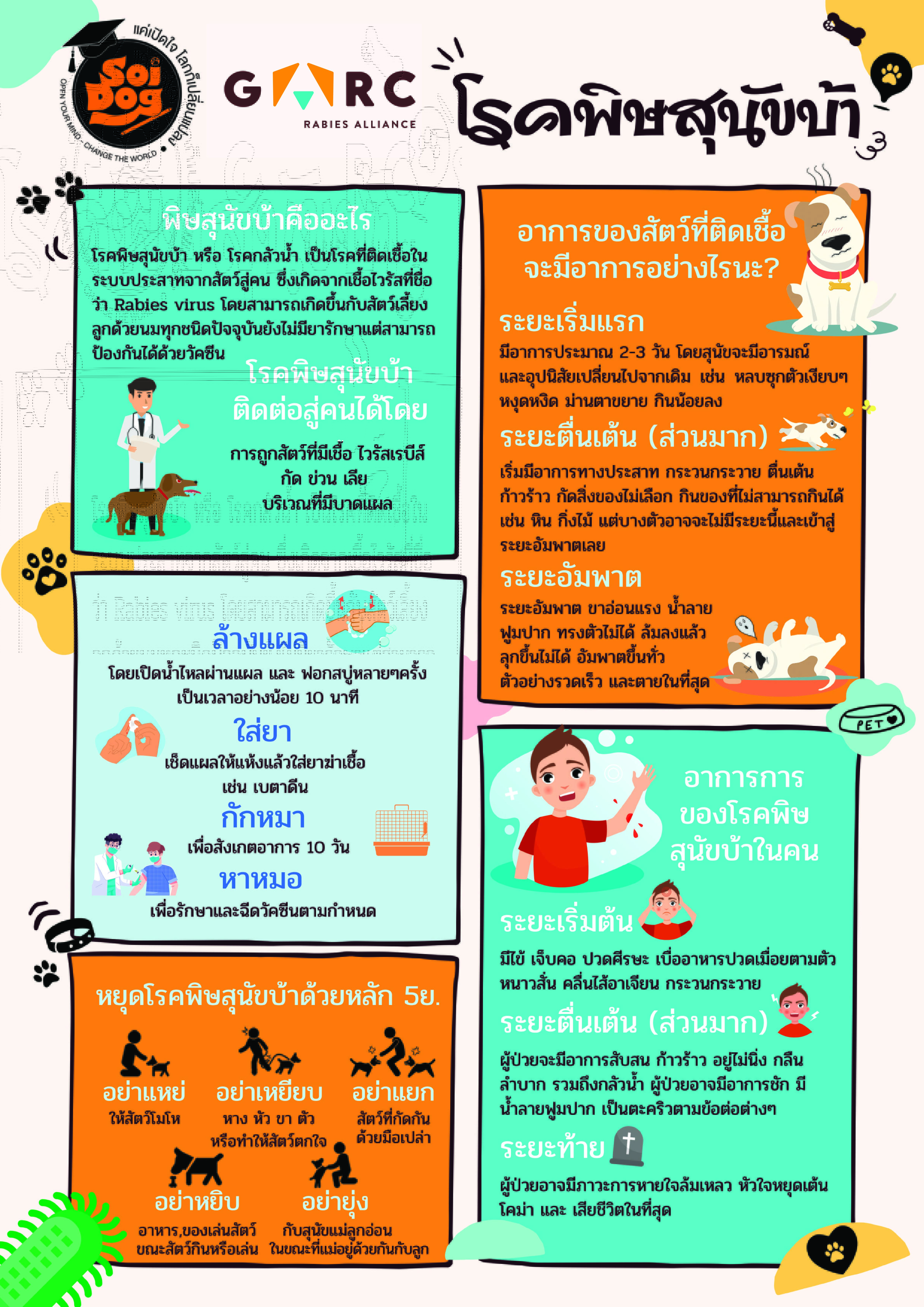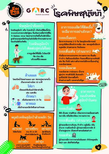 Informative poster on rabies, rabies prevention, bite management, and rabies signs and symptoms.