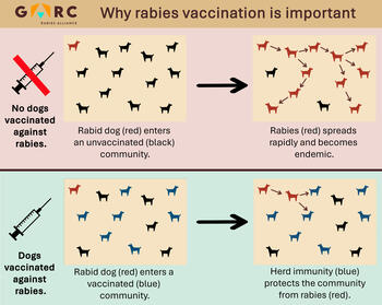 Why rabies vaccination is important Downloadable resources Rabies Prevention Download zip archive of files GARC An infographic explaining the importance of vaccinating dogs against rabies. PreviewEN_Dog vaccination explained_2025.jpg PreviewEN_Dog vaccination explained_2025.pdf