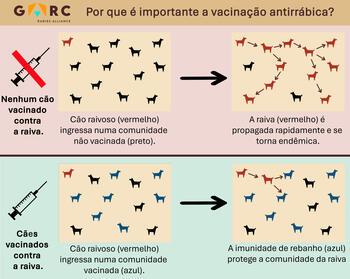Why rabies vaccination is important (Portuguese) Downloadable resources Rabies Prevention Download zip archive of files GARC An infographic explaining the importance of vaccinating dogs against rabies. PreviewPT_Dog vaccination explained_2025.jpg PreviewPT_Dog vaccination explained_2025.pdf